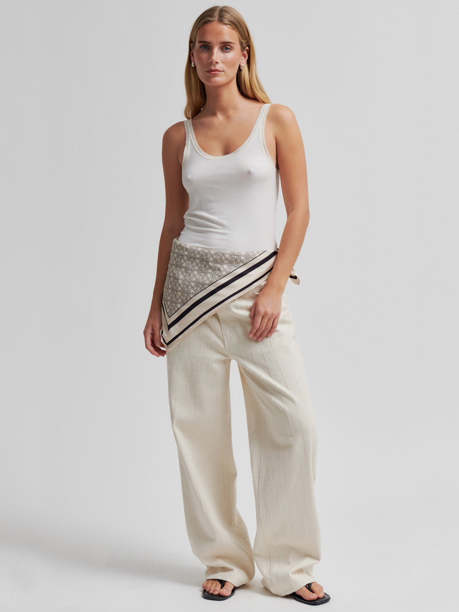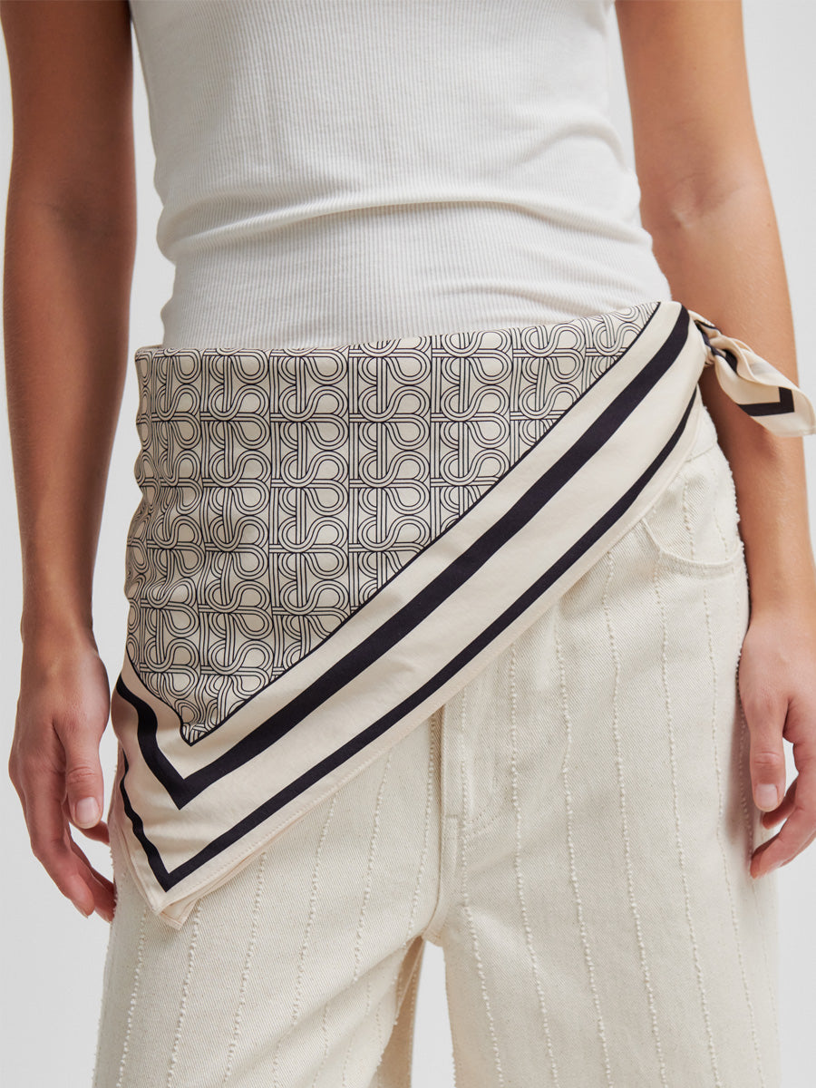 Tämä Second Femalen huivi on valmistettu pehmeästä ja miellyttävän sileästä viskoosisekoitteesta. Neliönmallista huivia koristaa kauttaaltaan logokuosi, ja kontrastivärinen reunaraita viimeistelee tyylikkään ilmeen.