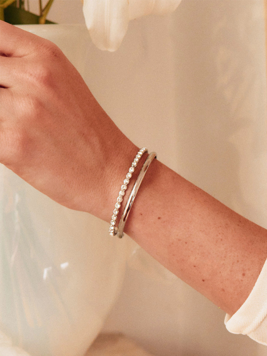 Edbladin upeassa Grace-rannekorussa on kaksi runkoa, joista yhdessä on kimaltavia kiviä ja toisessa ei. Valmistettu nikkelivapaasta, ruostumattomasta kirurgin teräksestä.