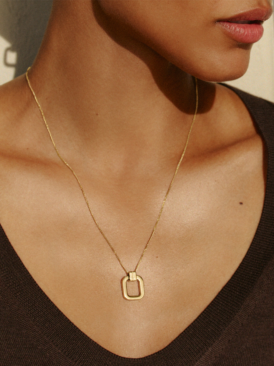 Edbladin Plaza-sarjan muotoilu perustuu pehmeälinjaiseen neliöön. Tämä kaulakoru istuu kauniisti kaulassa. Valmistettu nikkelivapaasta, ruostumattomasta kirurgin teräksestä ja päällystetty 14 karaatin kultauksella.
