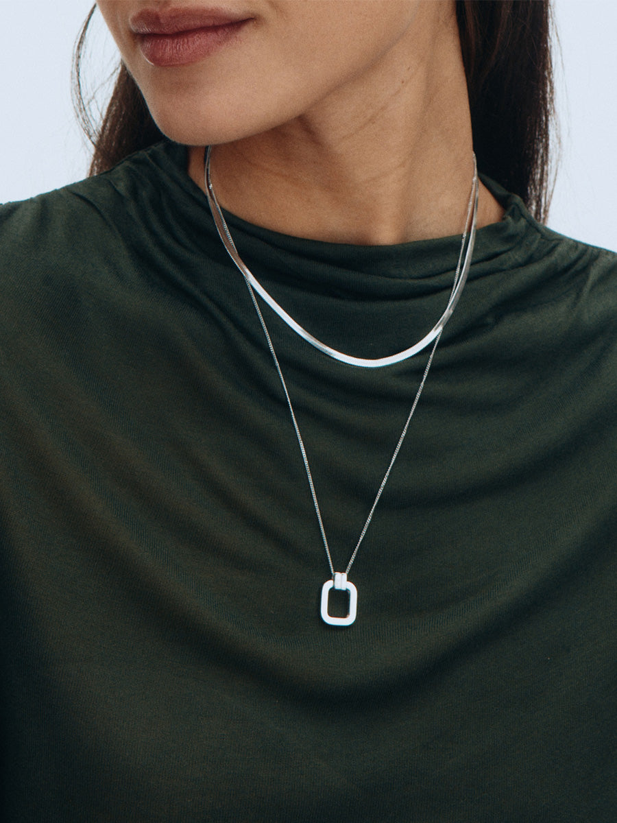 Edbladin Plaza-sarjan muotoilu perustuu pehmeälinjaiseen neliöön. Tämä kaulakoru istuu kauniisti kaulassa. Valmistettu nikkelivapaasta, ruostumattomasta kirurgin teräksestä.