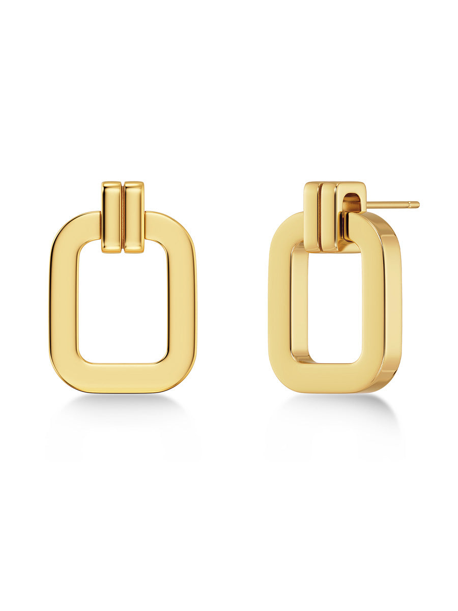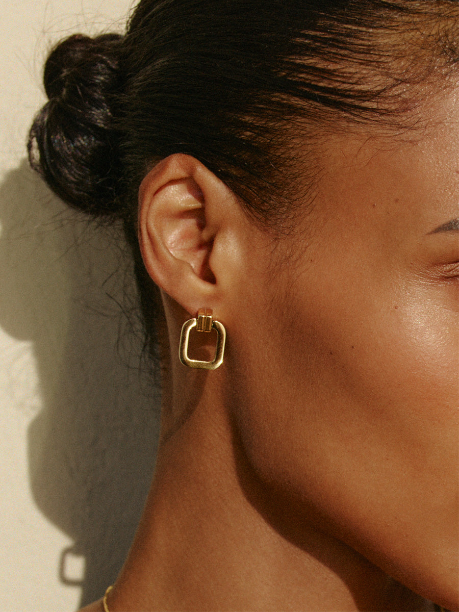 Edbladin Plaza-sarjan muotoilu perustuu pehmeälinjaiseen neliöön. Nämä korvakorut istuvat kauniisti korvaan. Valmistettu nikkelivapaasta, ruostumattomasta kirurgin teräksestä ja päällystetty 14 karaatin kultauksella.