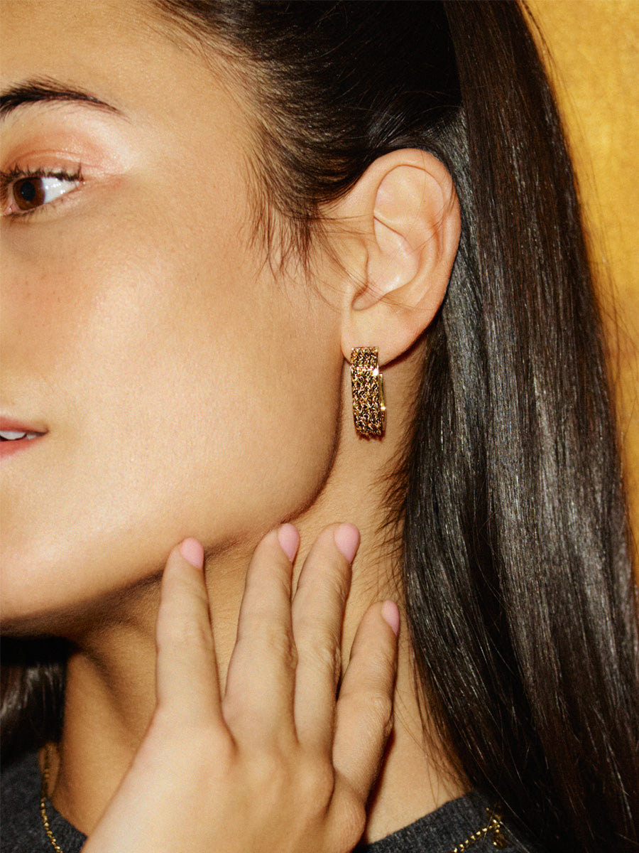 Edbladin Rays-korvakorut koostuvat ohuista säteilevistä ketjuista. Valmistettu nikkelivapaasta, ruostumattomasta kirurgin teräksestä ja päällystetty 14 karaatin kultauksella.