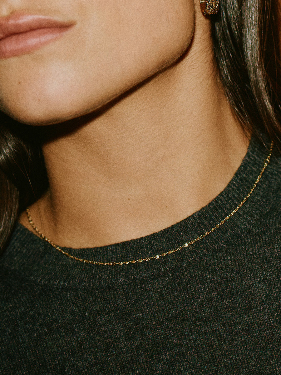 Edbladin Rays-kaulakoru säteilee kauniisti kaulassa. Helppo yhdistää ja täydellinen kerrostettavaksi. Valmistettu nikkelivapaasta, ruostumattomasta kirurgin teräksestä ja päällystetty 14 karaatin kultauksella.