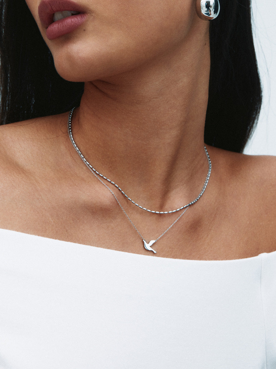 Edbladin Seed Bead on täydellinen kerrostusketju suorakaiteen muotoisine, valoa vangitsevine muotoineen. Valmistettu nikkelivapaasta, ruostumattomasta kirurgin teräksestä.