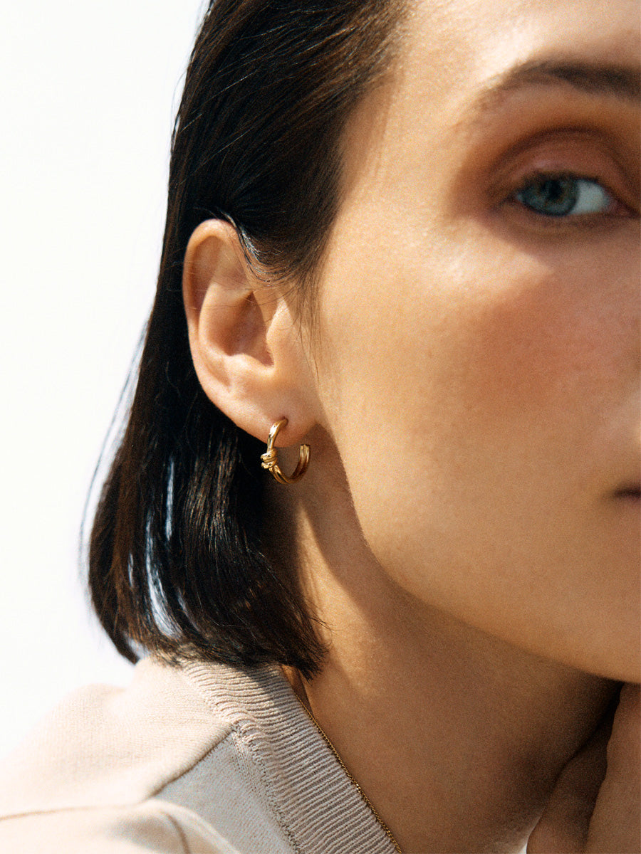 Edbladin Swivel-korvarenkaissa on keskellä siro spiraalimuoto. Valmistettu nikkelivapaasta, ruostumattomasta kirurgin teräksestä ja päällystetty 14 karaatin kultauksella.