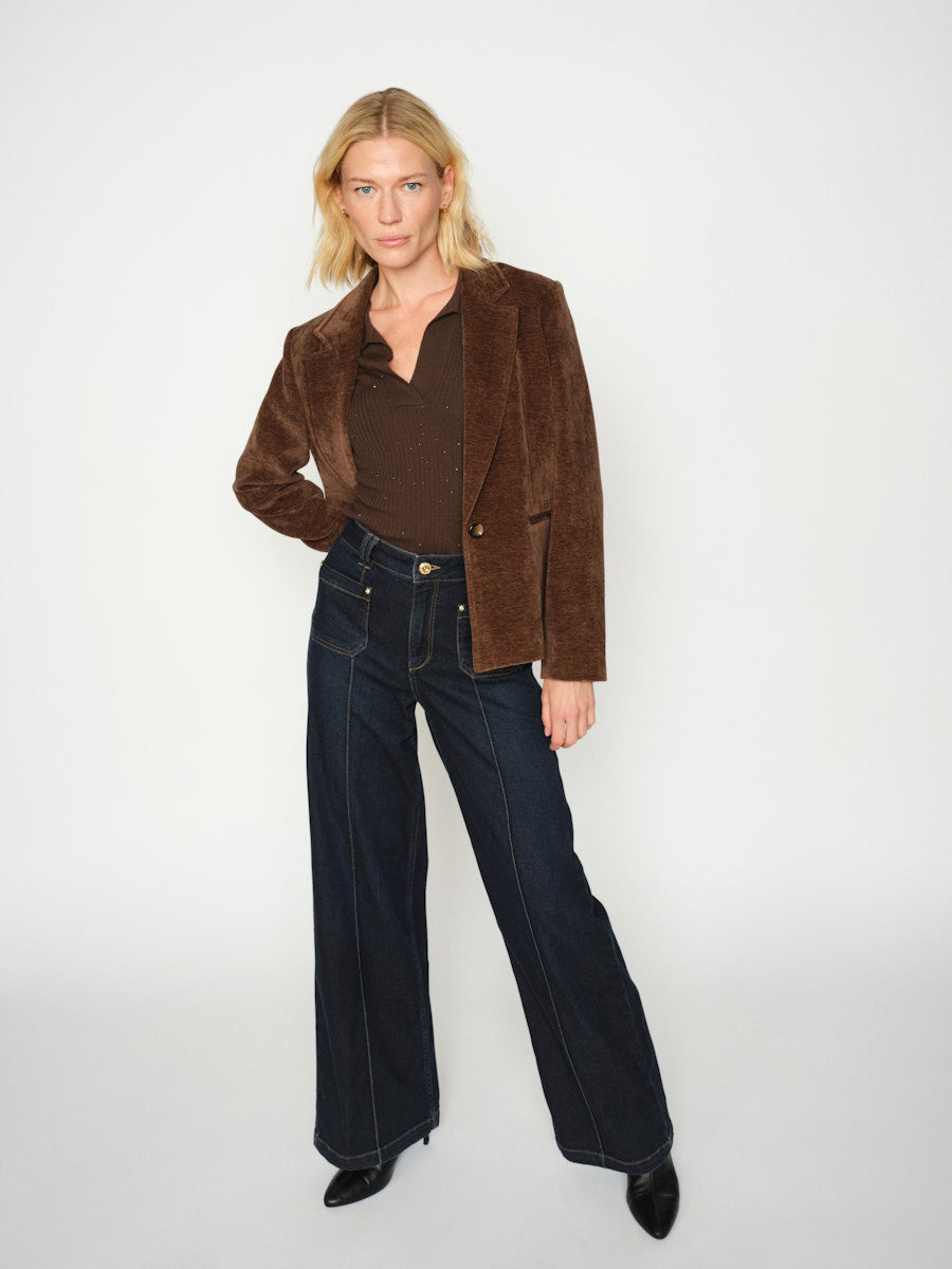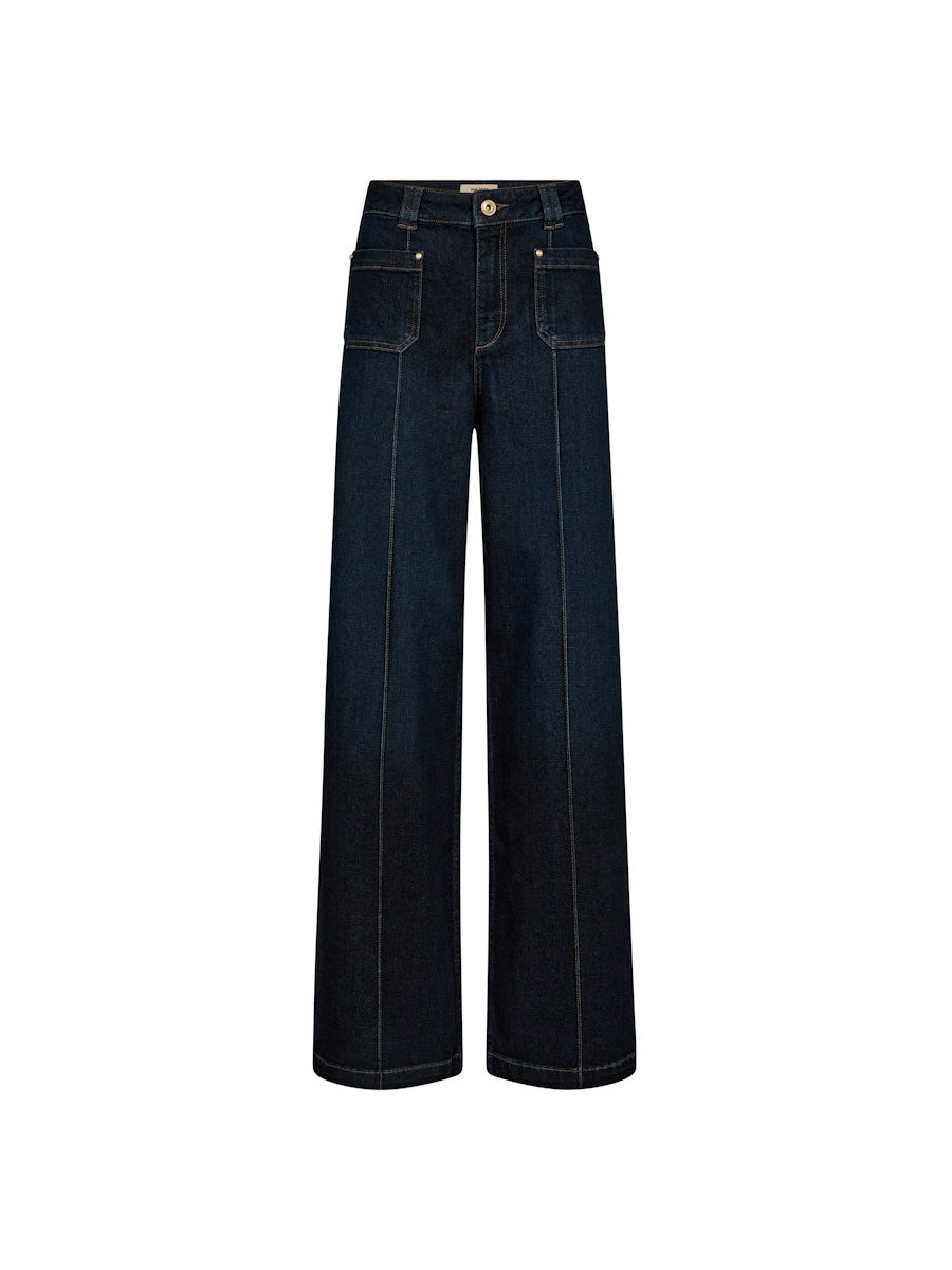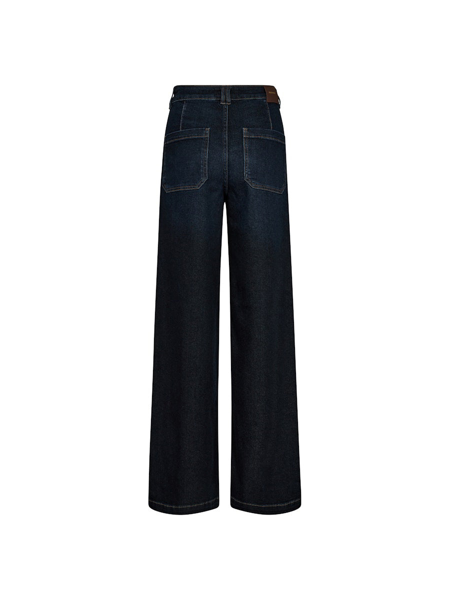 Nämä Mos Moshin leveälahkeiset farkut hurmaavat ajattomalla tyylikkyydellään. Korkea vyötärö ja selkeät linjat korostavat siluettia imartelevasti, kun taas hillityt taskuyksityiskohdat viimeistelevät tyylin. Täydellinen valinta niin rennon päivän lookiin kuin iltamenoihin.