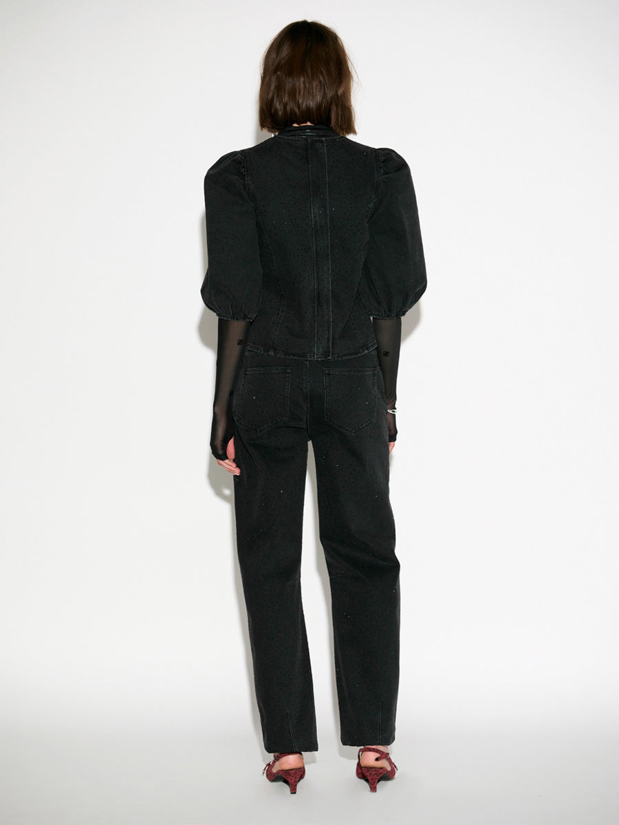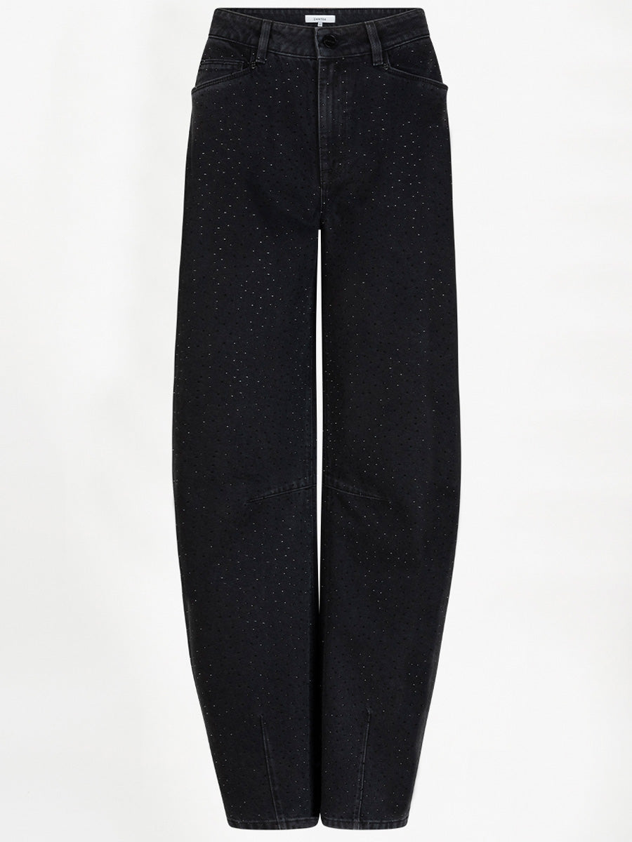 Danten Gaia-farkut tuovat vaatekaappiin näyttävää kimallusta. Täysin strasseilla koristellut, korkeavyötäröiset 100 % puuvillafarkut yhdistävät klassisen viisitaskumallin trendikkääseen barrel-lahkeeseen. Napitus, vetoketju ja vyölenkit tuovat tuttua käyttömukavuutta, ja takataskun monogrammi sekä nahkainen logolätkä viimeistelevät ilmeen. Täydellinen valinta silloin, kun haluat loistaa.