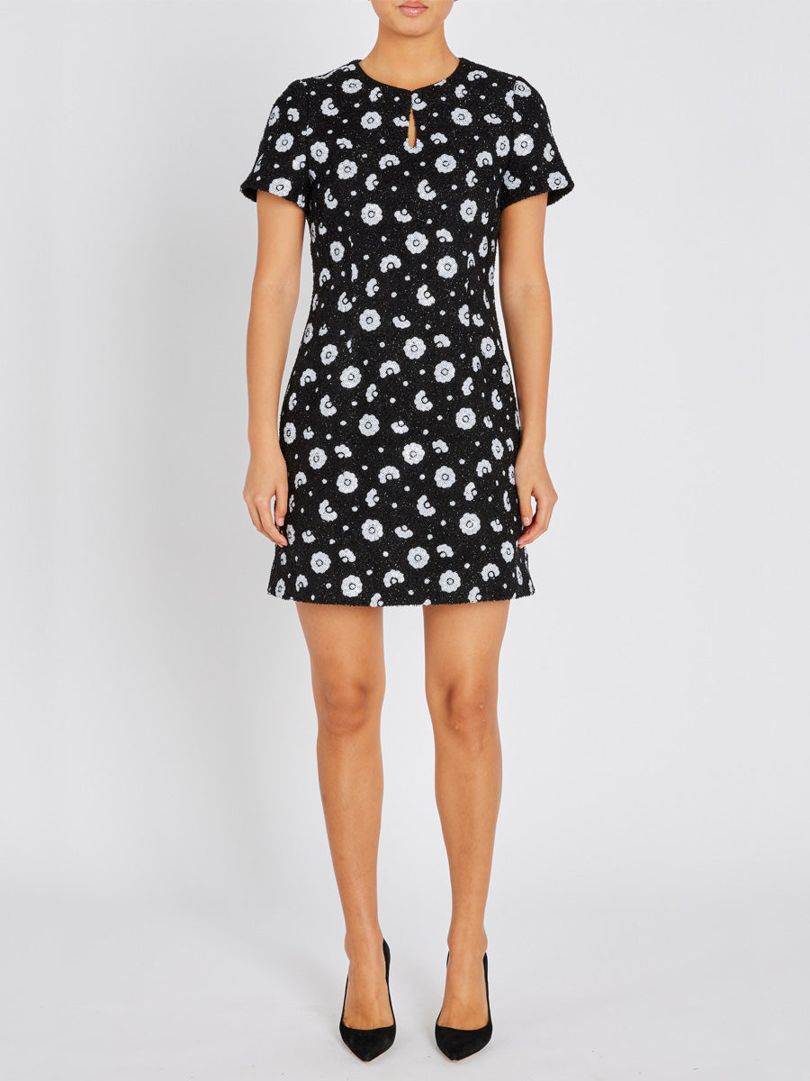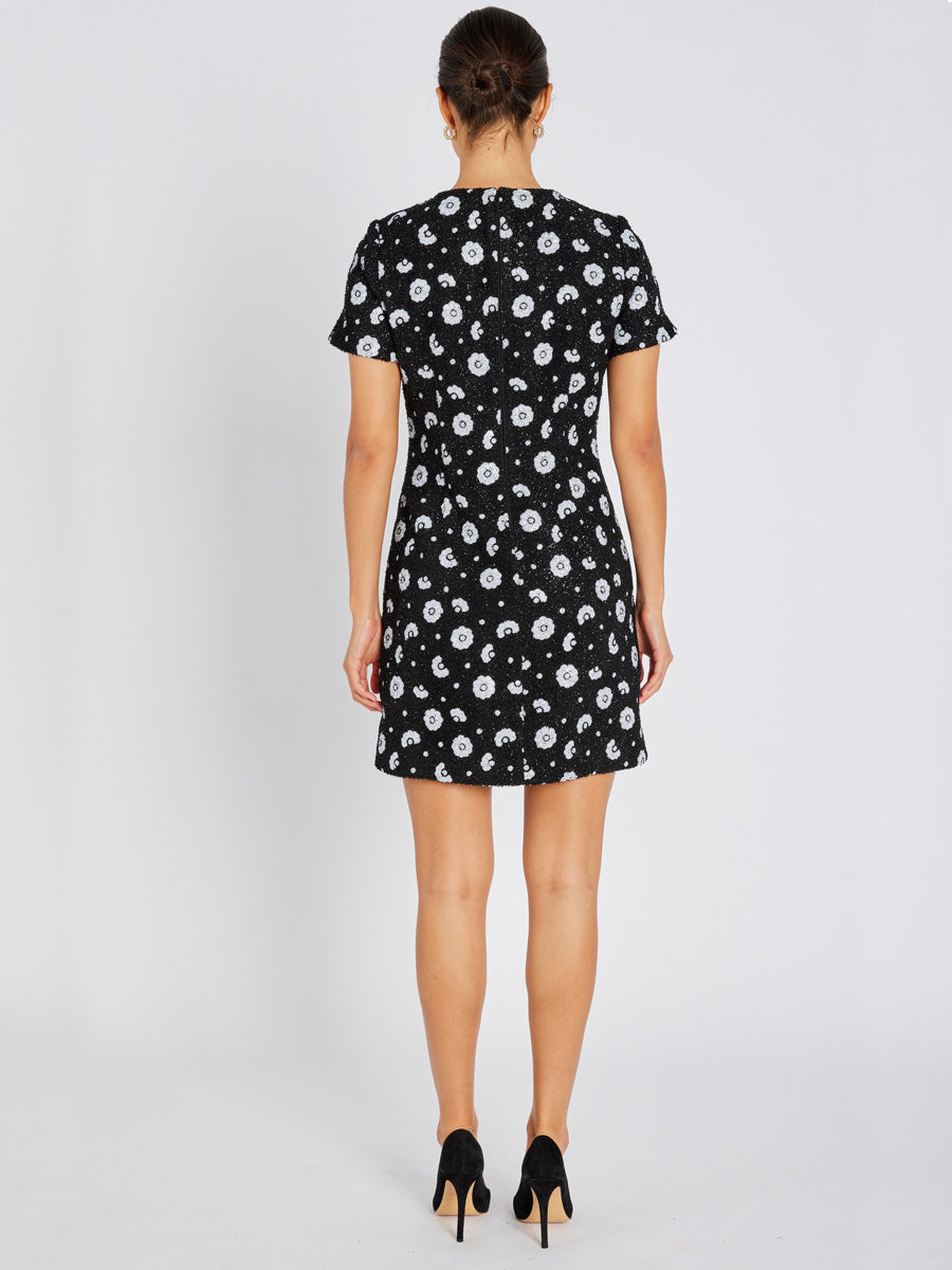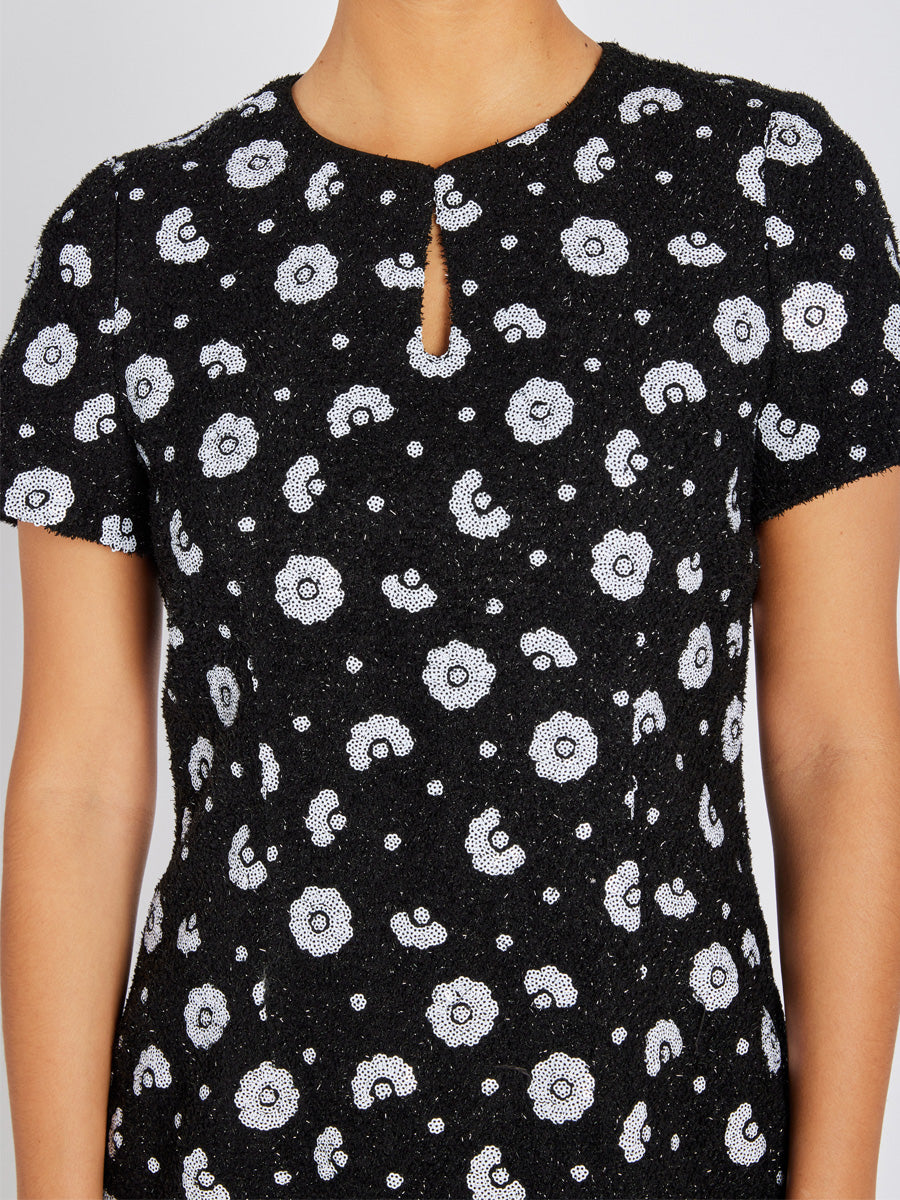 Tässä Bruuns Bazaarin mekossa yhdistyvät säihke ja itsevarma tyyli. Kukkakuvioidut paljetit peittävät koko pinnan, ja suora leikkaus sekä lyhyet hihat tekevät ilmeestä kevyen. Mekko on näyttävä valinta juhliin – se toimii yhtä hyvin korkokenkien ja korujen kanssa kuin sukkahousujen ja nilkkureiden parina rennommassa iltatyylissä.