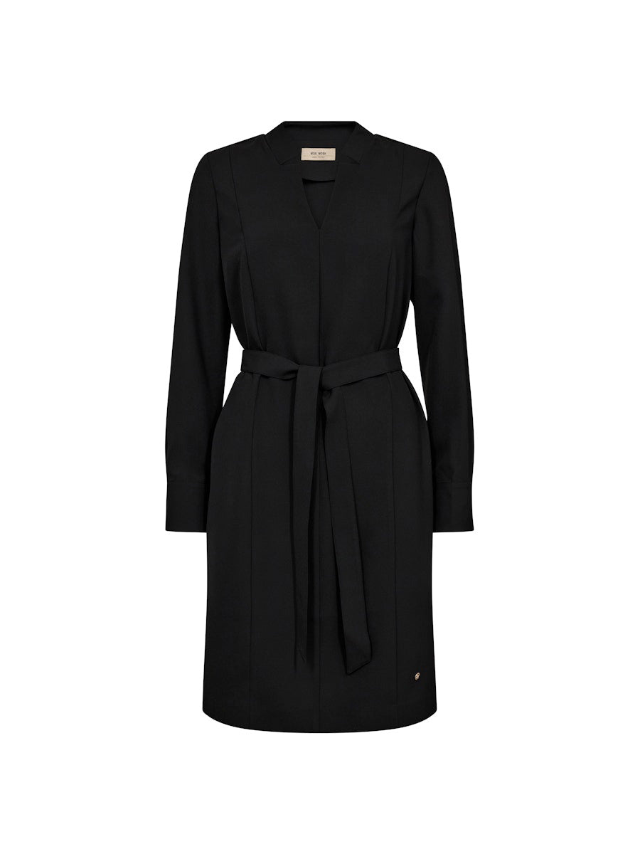 Tässä Mos Moshin mekossa on pelkistetty ja elegantti siluetti, pitkät hihat ja v-pääntie. Pehmeä mutta ryhdikäs kangas laskeutuu kauniisti, ja irrotettava vyö antaa mahdollisuuden muokata ilmettä rennosta tyylikkääseen tai vyötäröä korostavaan. Sopii erinomaisesti toimistolle, juhliin ja arjen erityisiin hetkiin.