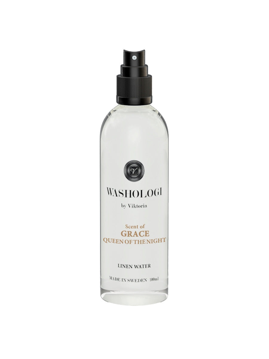 Washologin GRACE linen water saa tekstiilit tuoksumaan pehmeältä yön kuningattaren tuoksulta. Suihkuta pesukertojen välissä ja silityksen tai höyrytyksen jälkeen vahvistaaksesi tekstiilin raikasta tuoksua. Sopii kaikille tekstiileille. Tuoksuvesi on myös erinomainen sähköisyyden poistaja.