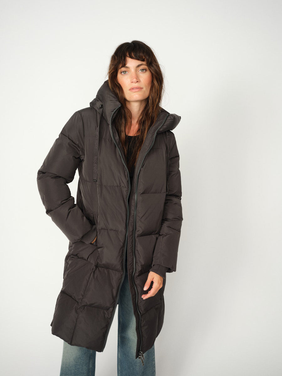 Valmistaudu kylmenevään säähän tämän Mos Moshin supersuositun untuvatakin avulla! Polvipituisessa takissa on korkea kaulus, huppu, kaksisuuntainen vetoketju ja lämpimät taskut fleece-vuorella. Helman sivuilla vetoketjut. Takin untuva on RDS-sertifioitua. Tämä takki pitää lämpimänä kylmilläkin pakkasilla!