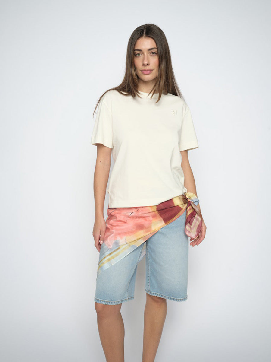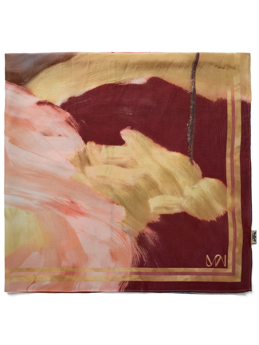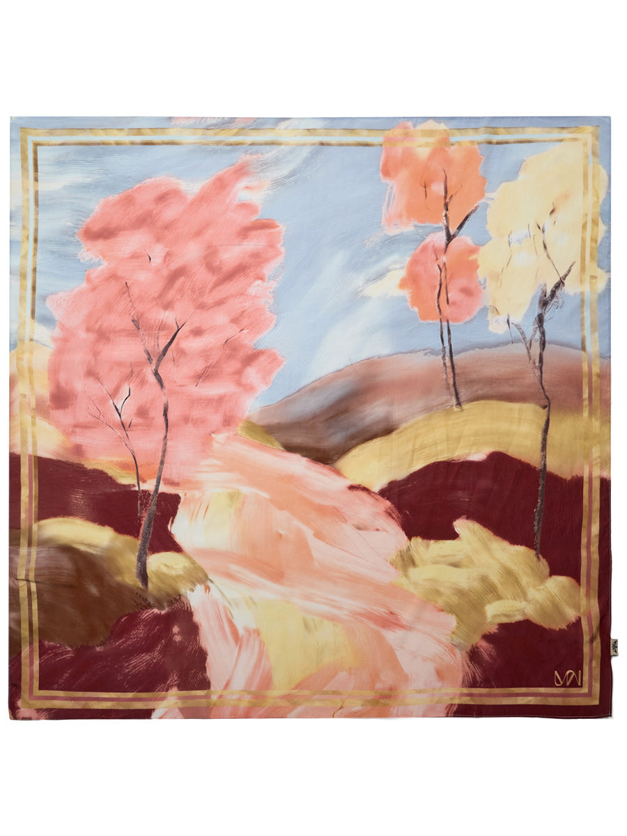 Tässä Mos Moshin huivissa on kaunis käsinmaalattu maisemaprintti, joka tuo siihen eksklusiivisen ilmeen. Kevyt materiaali ja pehmeät sävyt luovat elegantin kokonaisuuden, joka viimeistelee asun persoonallisella tavalla. Huivia voi käyttää rennosti kaulassa, vyötäröllä tai asetella hartioille.