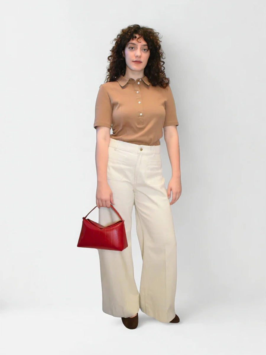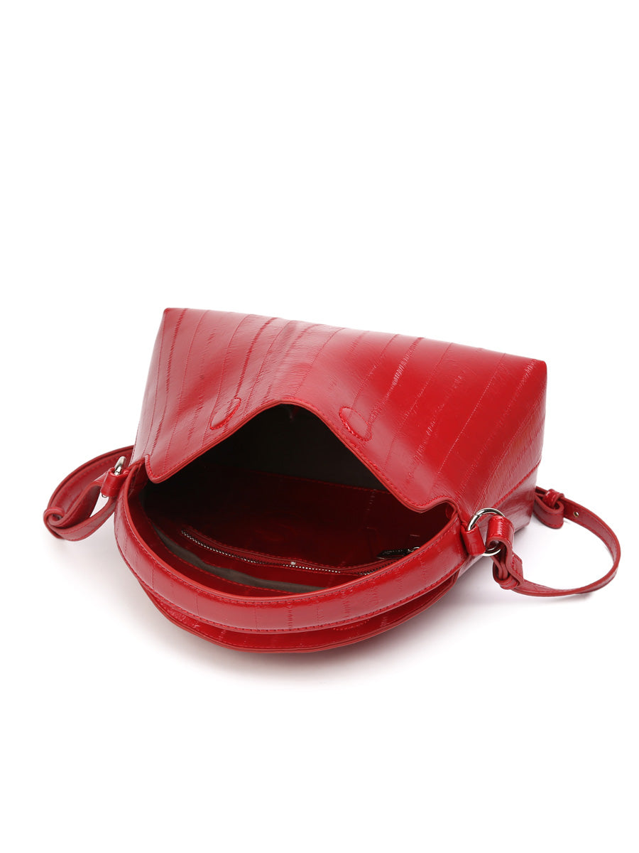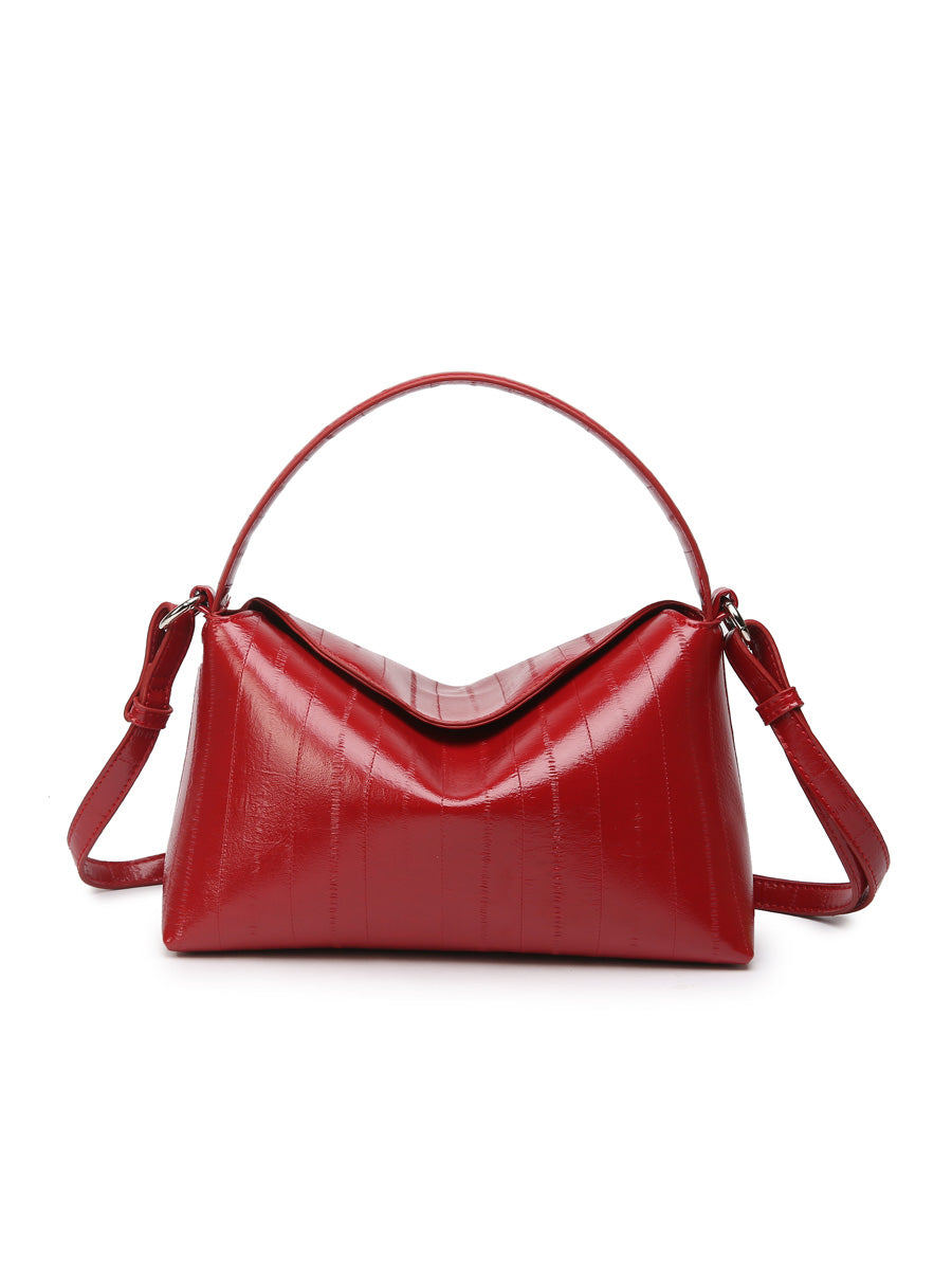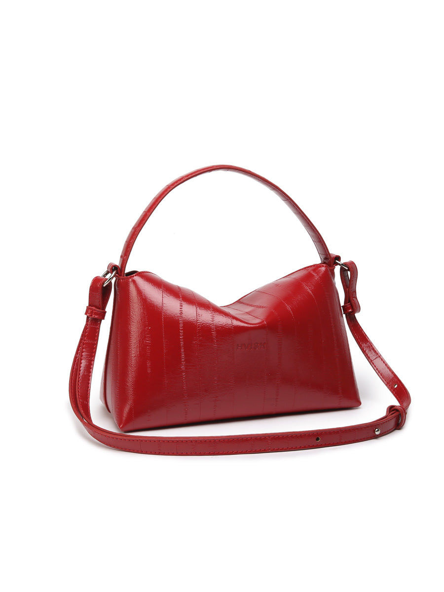 Hviskin tyylikäs käsilaukku, jossa on lyhyt kantokahva sekä pidempi, säädettävä ja irrotettava olkahihna. Laukussa on yksi iso osio ja pieni vetoketjutasku sisällä. Lyhyt läppä suljetaan kahdella magneettinapilla.