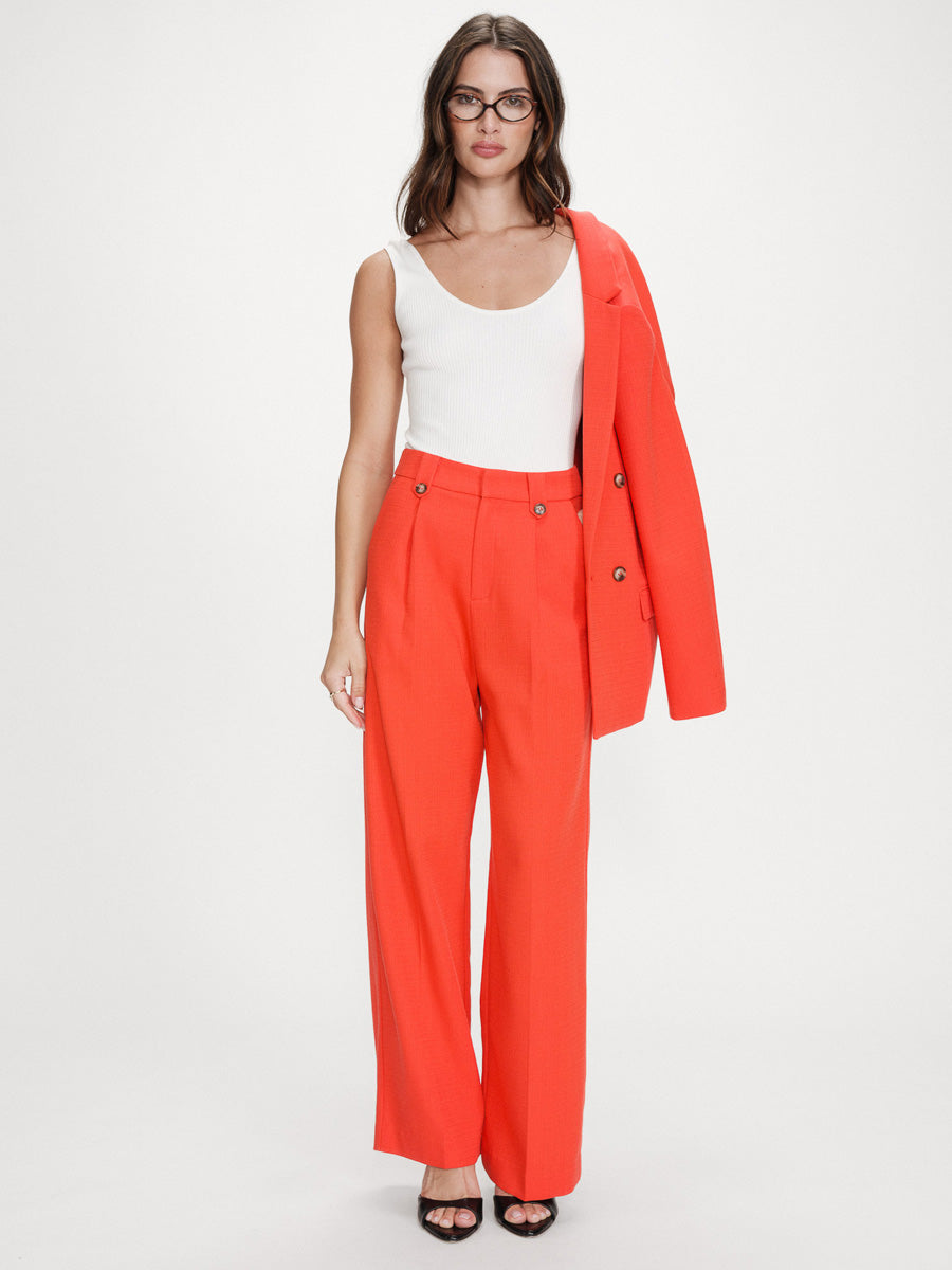 Näissä Grace & Milan housuissa on suora, leveälahkeinen leikkaus ja vyötärön laskokset, jotka tuovat ryhtiä ja viimeisteltyä ilmettä. Housut istuvat kauniisti ja sopivat niin arkeen kuin siistimpään pukeutumiseen. Yhdistä Parfaite-bleiseriin yhtenäiseksi ja huolitelluksi kokonaisuudeksi.
