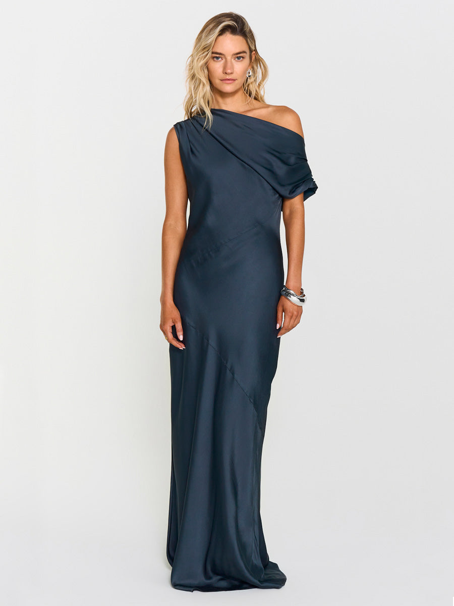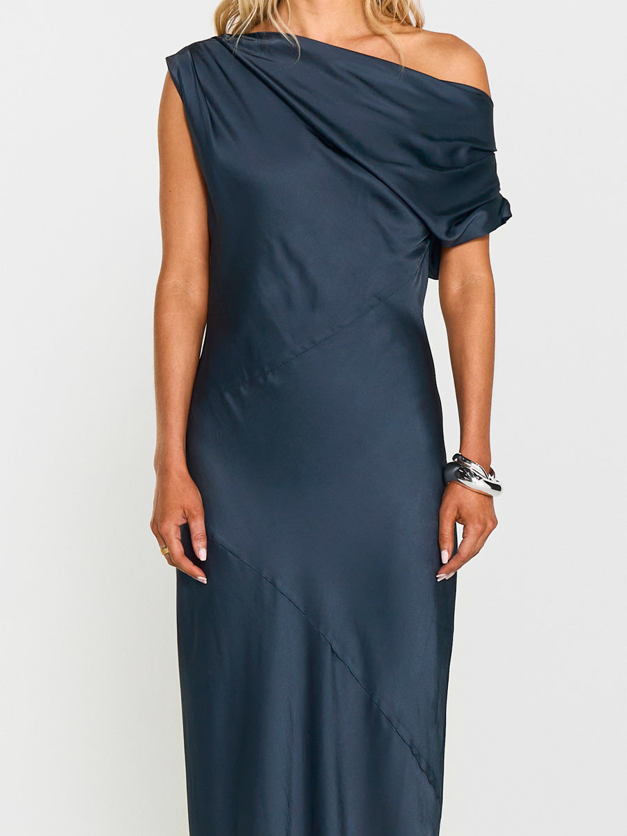 Tässä Twist & Tangon Vanessa-mekossa ylellinen satiinikangas ja pehmeästi laskeutuva cowl-pääntie luovat tyylikkään ja naisellisen ilmeen. Vinoleikkaus korostaa siluettia kauniisti, ja maksipituus tekee mekosta ajattoman valinnan juhliin ja erityisiin tilaisuuksiin. Malli on 171 cm pitkä ja päällään koko 36.