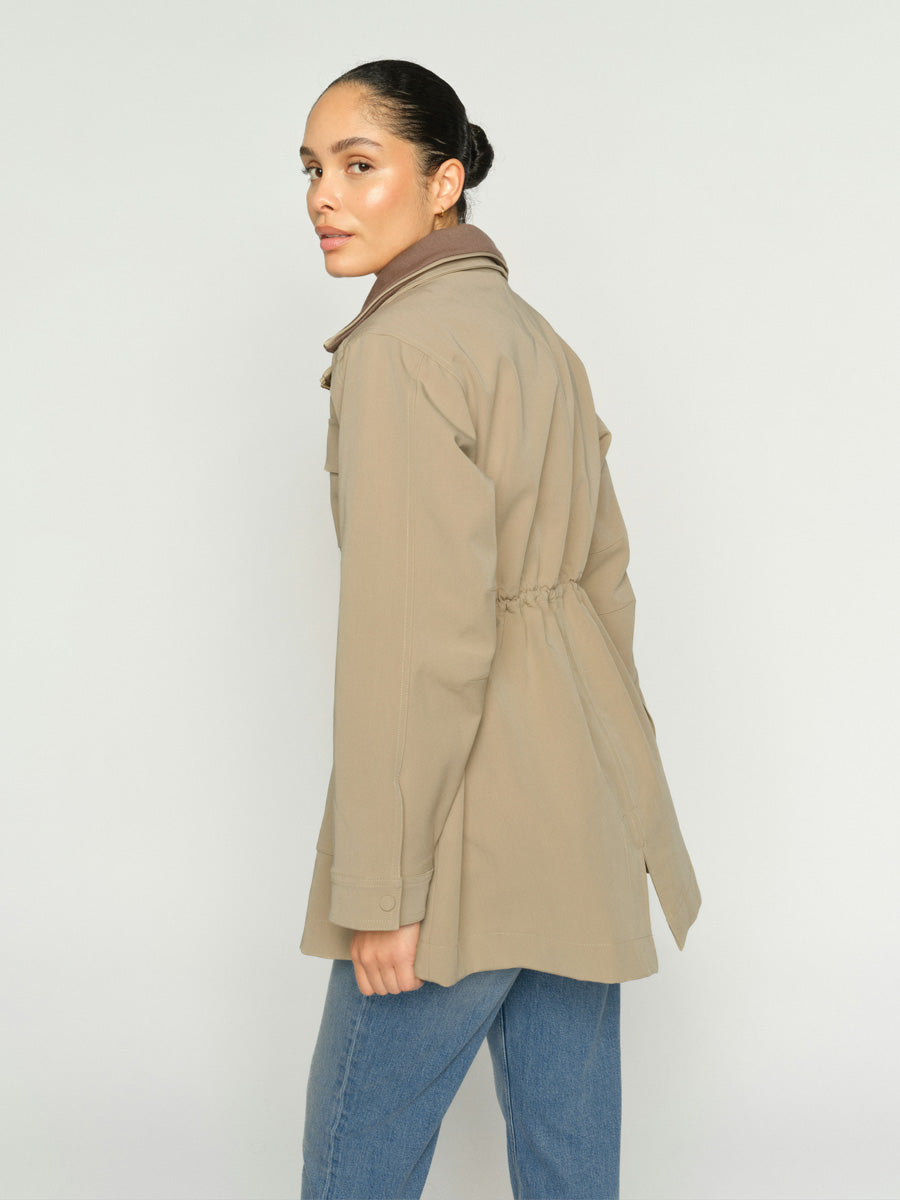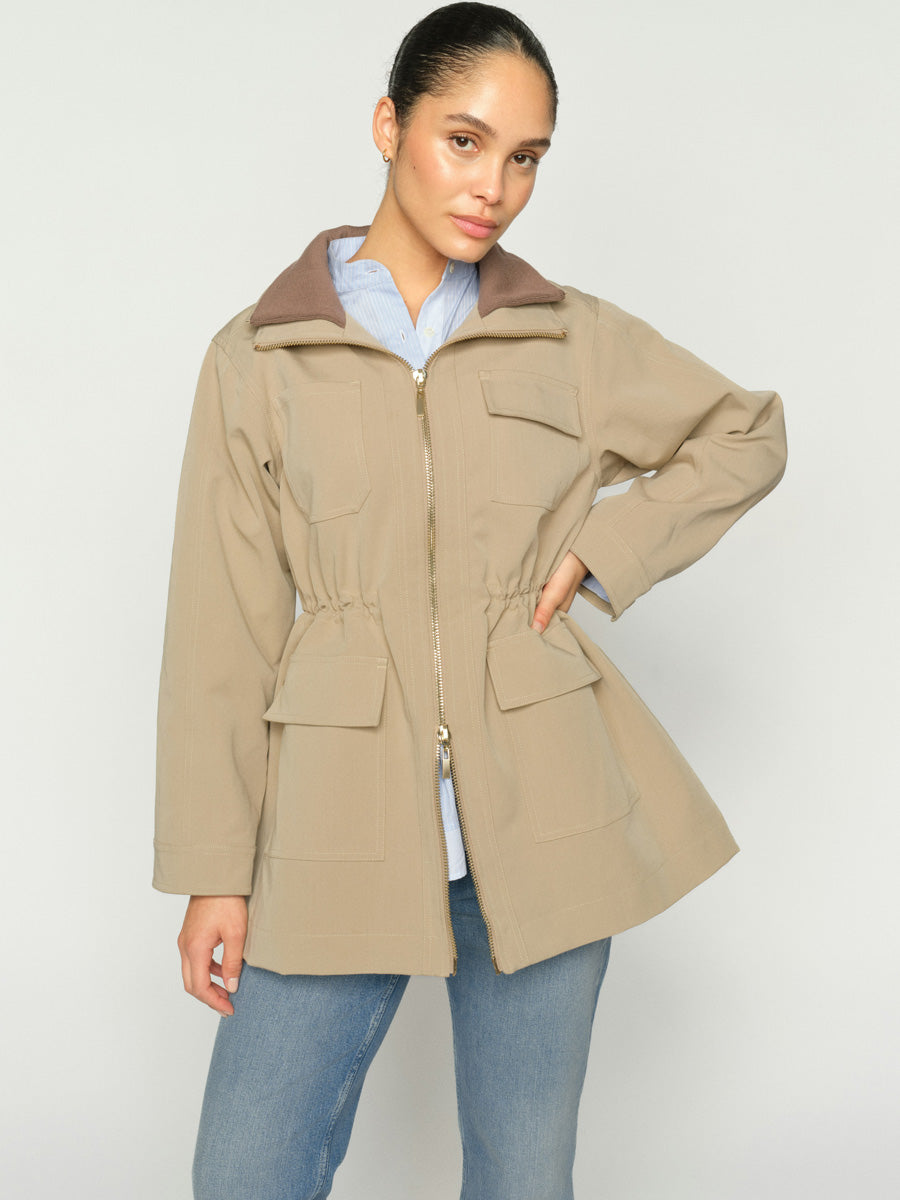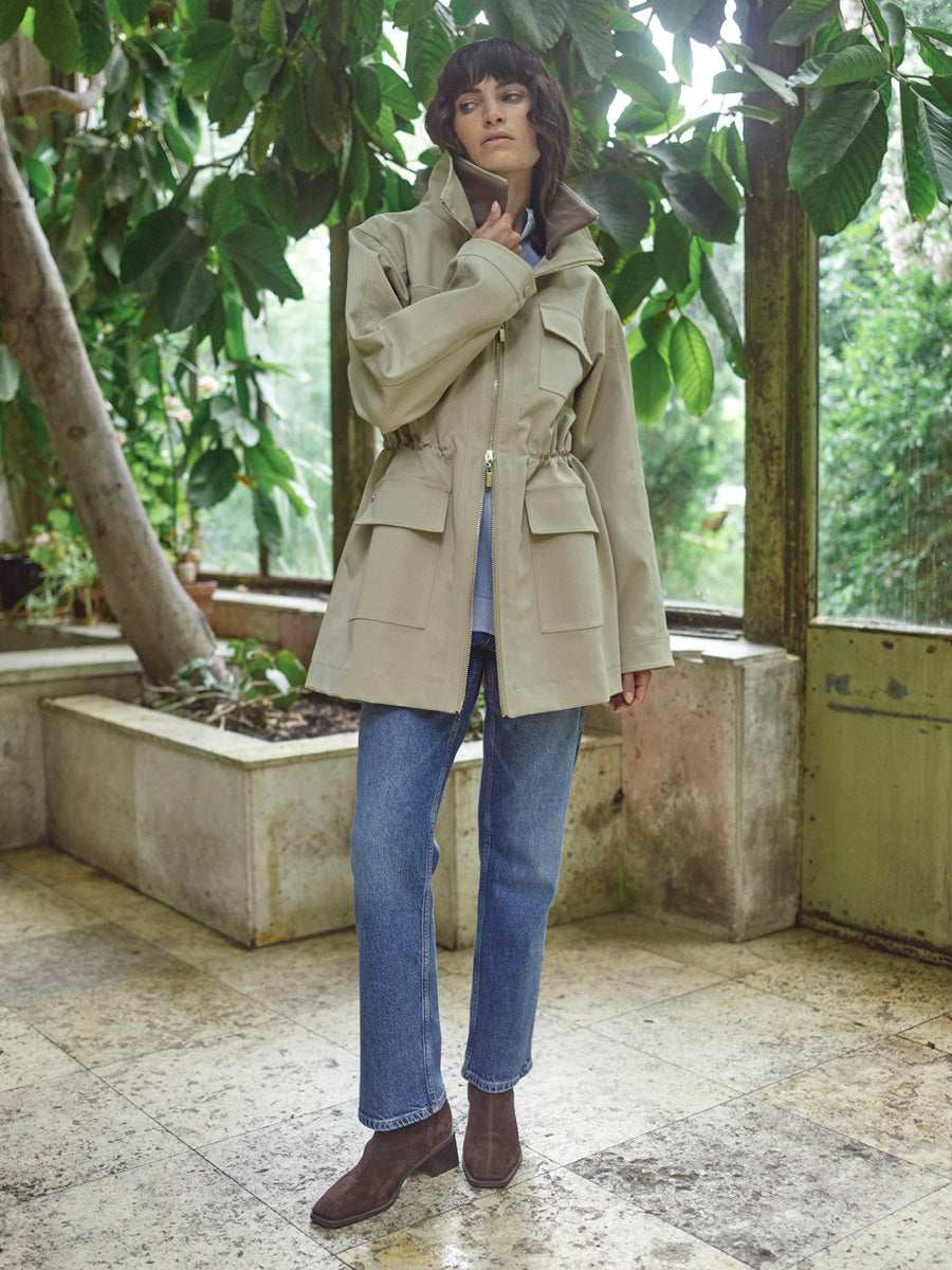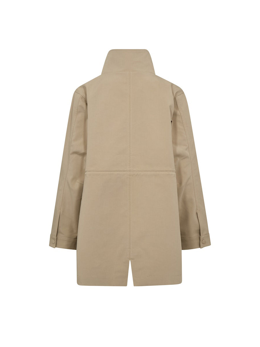 Tässä Mos Moshin takissa ajaton muotoilu kohtaa trendikkään, utilitaristisen ilmeen. Korkea kaulus ja rennosti laskeutuva siluetti tekevät takista helpon kerrostaa, ja suuret etutaskut tuovat sekä käytännöllisyyttä että tyyliä. Näkyvä vetoketju viimeistelee ilmeen. Täydellinen valinta välikausiin ja arkilookeihin, kun haluat asuusi huolitellun mutta rennon fiiliksen.