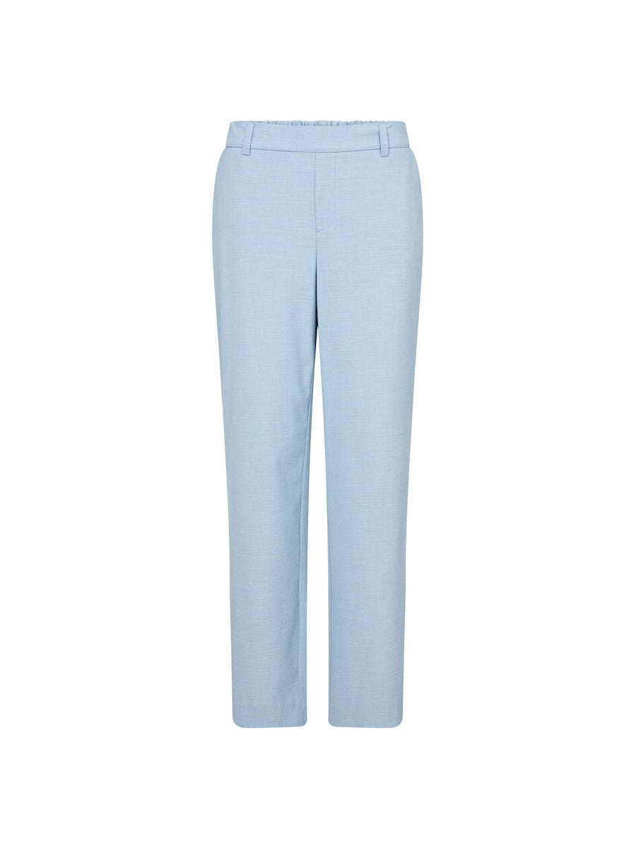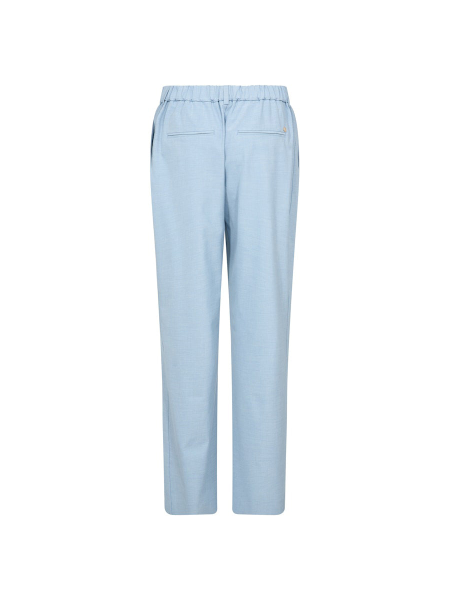 Nämä Mos Moshin housut on suunniteltu arkea ja siistimpää pukeutumista ajatellen. Suora, huoliteltu leikkaus ja hillitty meleerattu pinta tekevät ilmeestä viimeistellyn, mutta joustava takaosa lisää käyttömukavuutta. Keskikorkea vyötärö istuu kauniisti ja tekee housuista helpon valinnan eri yläosien kanssa. Yhdistä Rikas Roy -puseron kanssa, kun haluat yhtenäisen ja siistin kokonaisuuden.