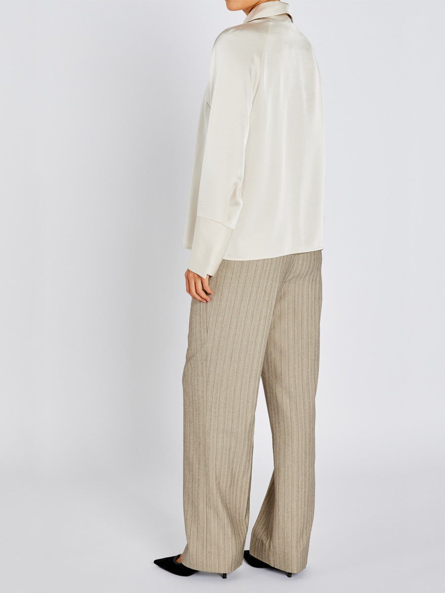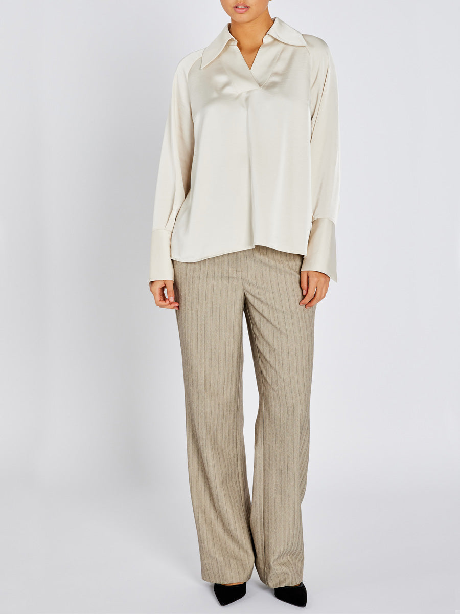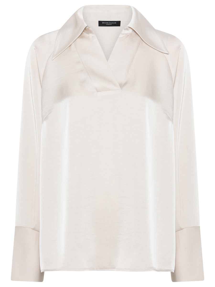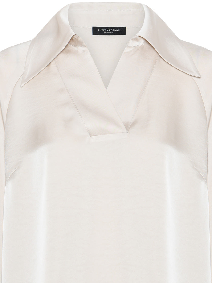 Tässä Bruuns Bazaarin BeckiaBBKassindra-puserossa satiinimainen kiilto ja rento istuvuus luovat hillityn, mutta tyylikkään kokonaisuuden. Teräväkärkinen kaulus ja pehmeästi laskeutuva kangas tuovat asuun viimeisteltyä ilmettä, joka sopii täydellisesti niin toimistoon kuin iltamenoihinkin. Pusero on helppo stailata siistien housujen ja loafereiden kanssa arkeen tai yhdistää hameeseen ja korkoihin juhlavampaa tyyliä varten.