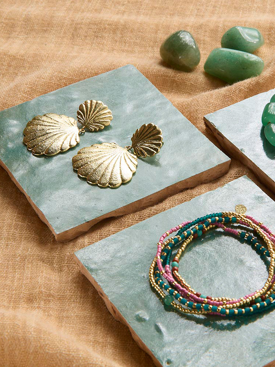 A Beautiful Storyn näyttävät korvakorut, jotka koostuvat kahdesta simpukan muodosta.