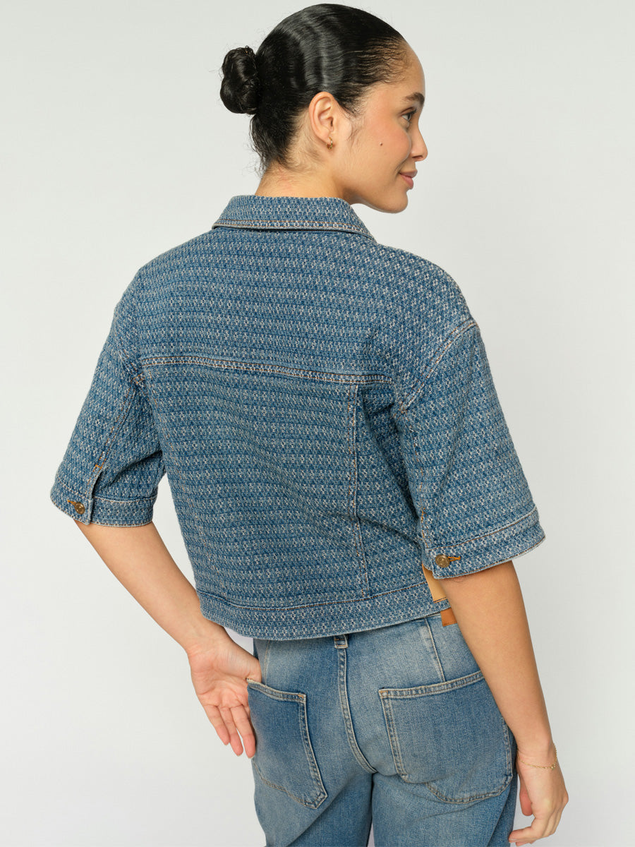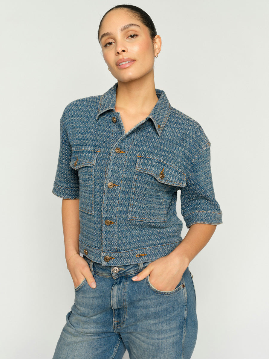 Tässä Mos Moshin denim-takissa klassinen farkkutyyli saa modernin päivityksen. Rennon väljä istuvuus, lyhyet hihat ja klassinen kaulus luovat huolettoman mutta harkitun ilmeen. Edessä nappikiinnitys ja taskut viimeistelevät kokonaisuuden, ja eläväpintainen denim tuo materiaaliin kiinnostavaa tekstuuria.
