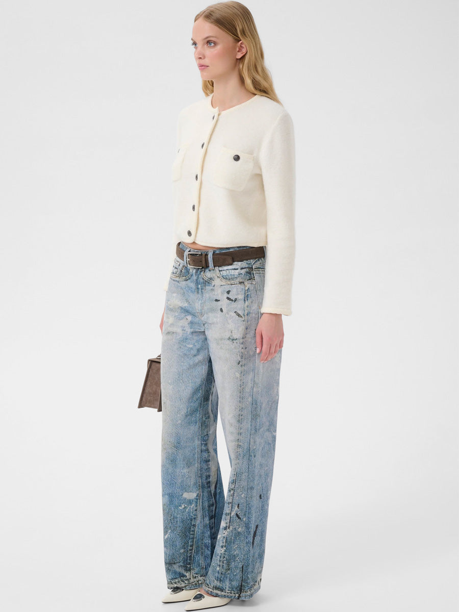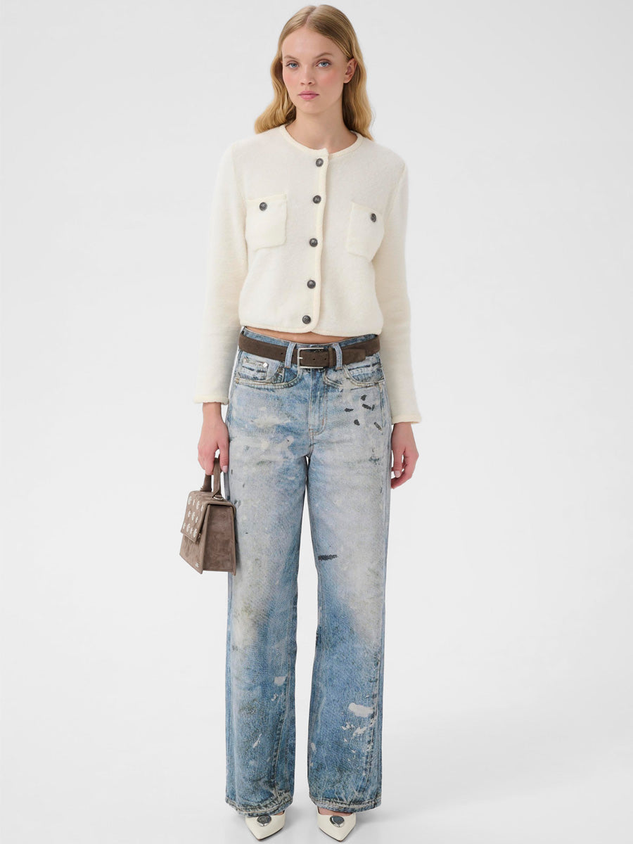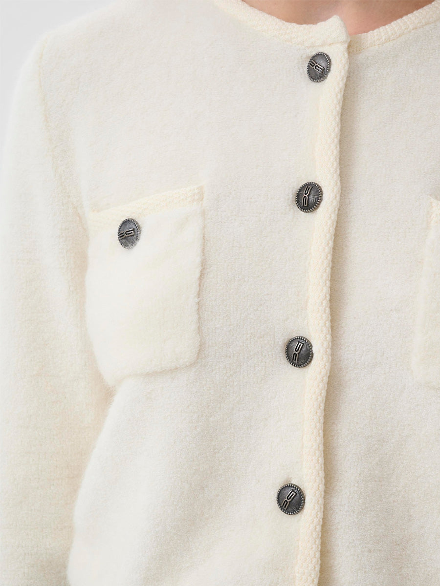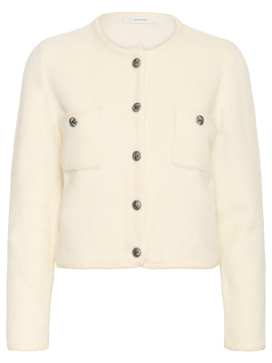 Tässä Gestuzin neuletakissa yhdistyy tyylikkyys ja rentous. Pehmeä villasekoite tuntuu miellyttävältä päällä ja tekee neuleesta täydellisen valinnan ympärivuotiseen käyttöön. Lyhyempi, suoralinjainen malli tuo ryhtiä asuun, ja klassinen pyöreä pääntie yhdessä näyttävien nappien kanssa luo viimeistellyn ilmeen. Tämä neuletakki toimii upeasti niin farkkujen kuin mekkojenkin parina – helppo tapa viimeistellä niin arki- kuin toimistolook.