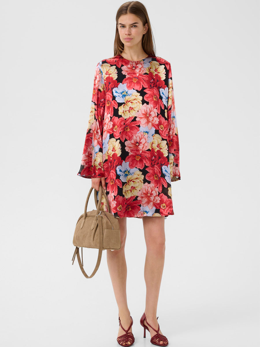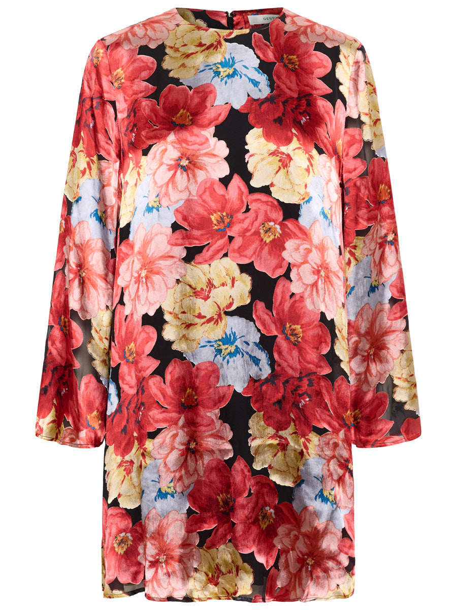 Tämä Gestuzin ylellisestä silkkisekoitteesta valmistettu mekko on vaivattoman tyylikäs valinta, joka toimii juhlassa kuin juhlassa. Suoralinjainen malli laskeutuu kauniisti ja tuntuu mukavalta päällä, kun taas pyöreä pääntie ja pitkät hihat luovat ajattoman ilmeen. Hihojen sisällä olevat kumilenksut tuovat mukavuutta.