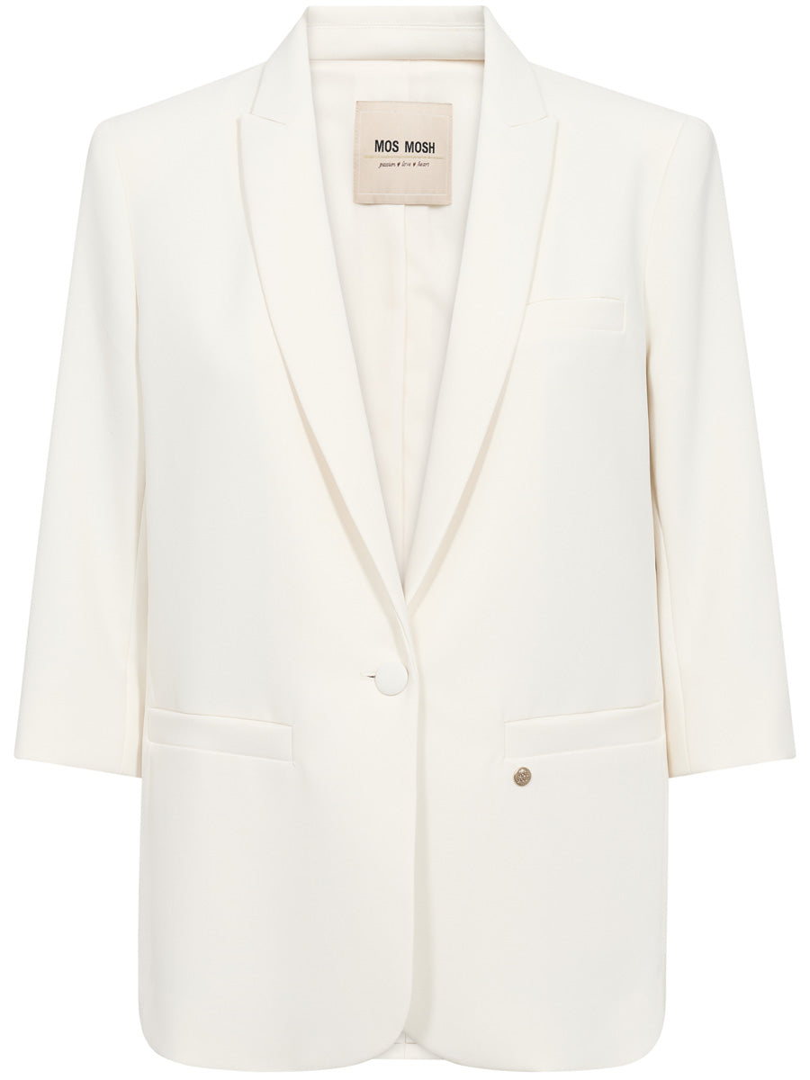 Tässä Mos Moshin bleiserissä yhdistyvät huoliteltu räätälöinti ja kevyt ilme. 3/4-pituiset hihat ja siro yksirivinen nappikiinnitys tuovat asuun raikkautta, kun taas klassinen kaulus ja selkeä istuvuus antavat kokonaisuudelle ryhdikkään ilmeen. Sileäpintainen kangas antaa asulle huolitellun lopputuloksen.
