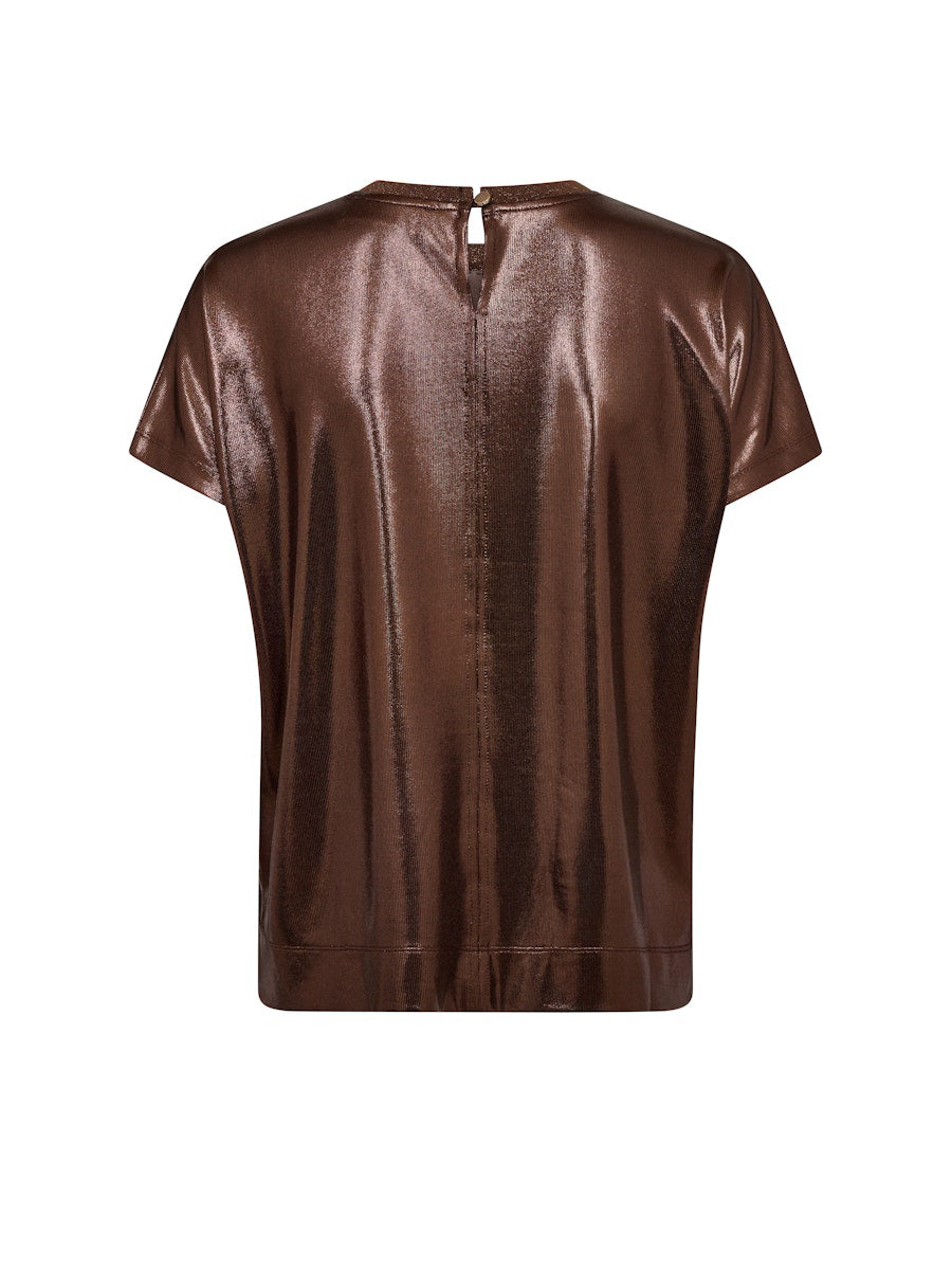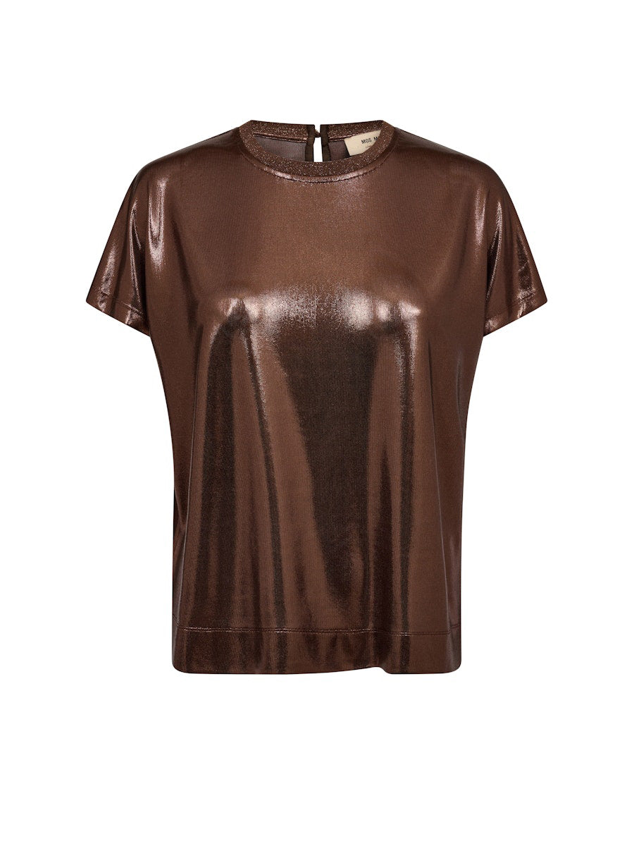 Tämä Mos Moshin glamouria henkivä t-paita on näyttävä lisä vaatekaappiisi! Rento ja tyylikäs leikkaus yhdistettynä metallinhohtavaan pintaan luo upean ilmeen. Tämä paita on täydellinen valinta, joka näyttää upealta mustien farkkujen ja oversize-bleiserin kanssa.