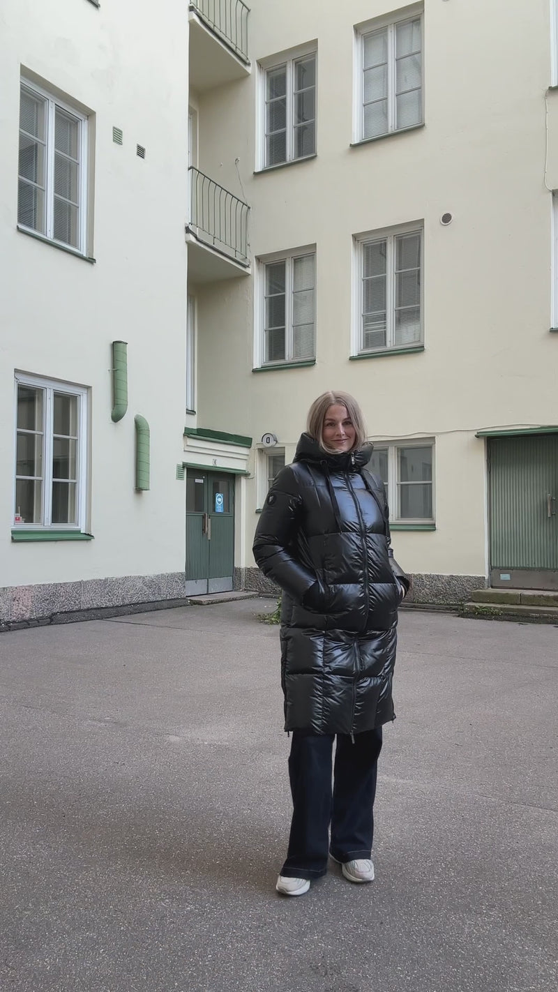 Mos Moshin supersuosittu NOVA untuvatakki nyt upeassa metallinhohtoisessa versiossa. Polvipituisessa untuvatakissa on korkea kaulus, huppu, kaksisuuntainen vetoketju ja lämpimät taskut fleece-vuorella. Helman sivuilla vetoketjut. Takin untuva on RDS-sertifioitua. Tämä takki pitää lämpimänä kylmilläkin pakkasilla!