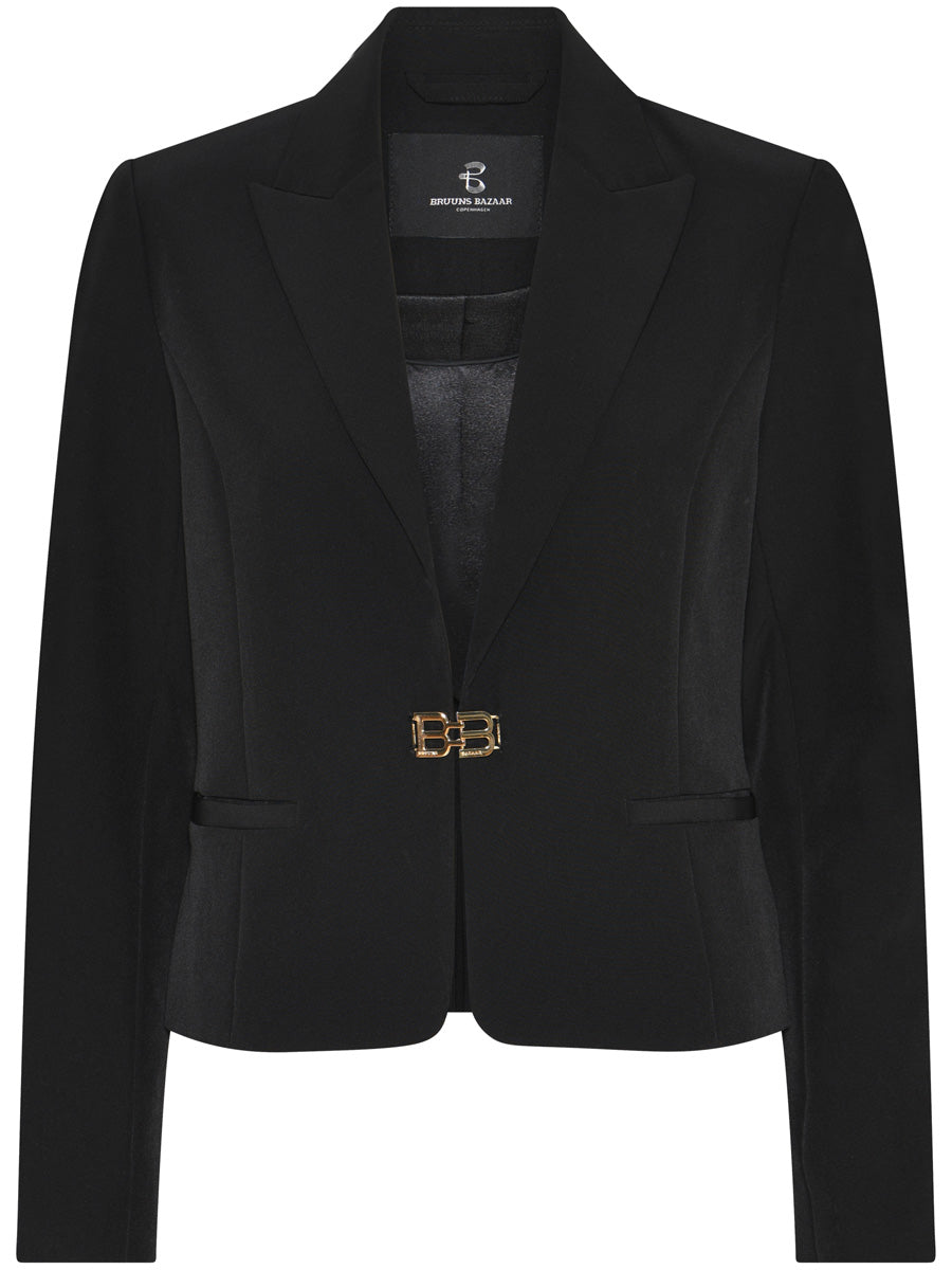 Tässä Bruuns Bazaarin bleiserissä kevyt muotoonleikkaus luo naisellisen, huolitellun siluetin. Logollinen sulkuyksityiskohta viimeistelee ilmeen, ja jakku toimii helposti niin siistien housujen kuin farkkujen tai hameen kanssa.