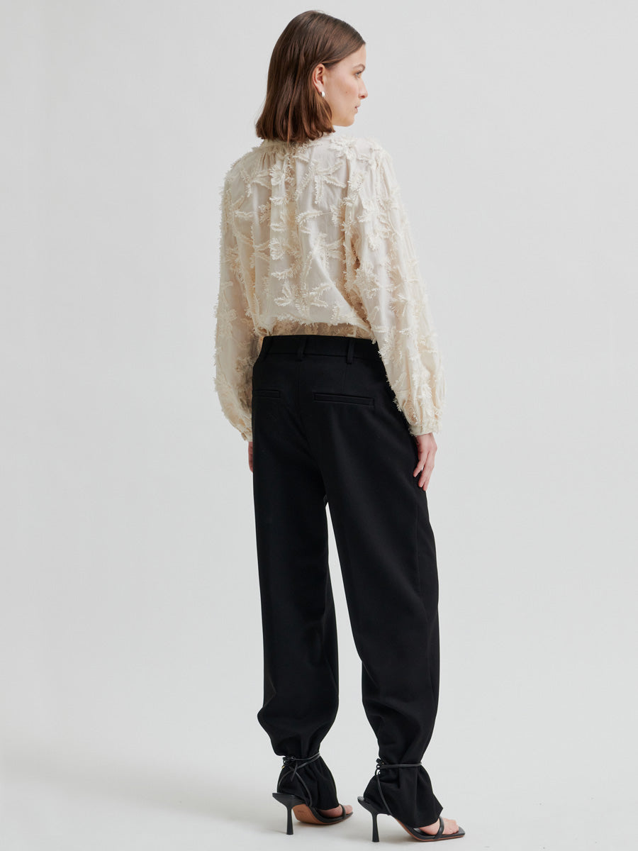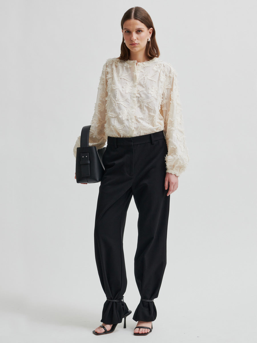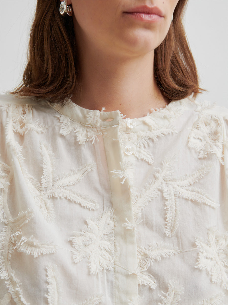 Tämä Second Femalen paita on valmistettu sileästä puuvillasekoitteesta, jota elävöittää kolmiulotteinen lehtikuvio. Mallissa on pyöreä kaulus ja nappikiinnitys koko pituudelta. Pitkät hihat ja suora istuvuus.
