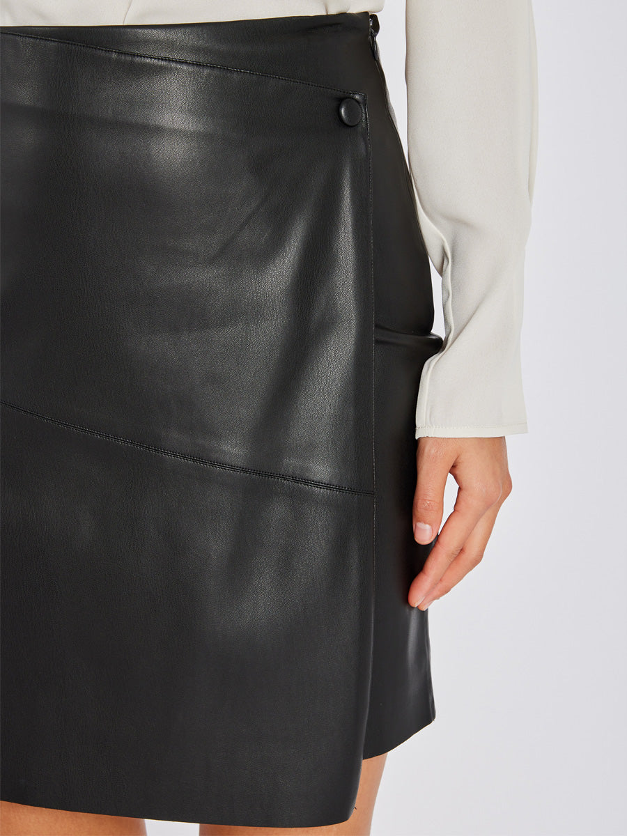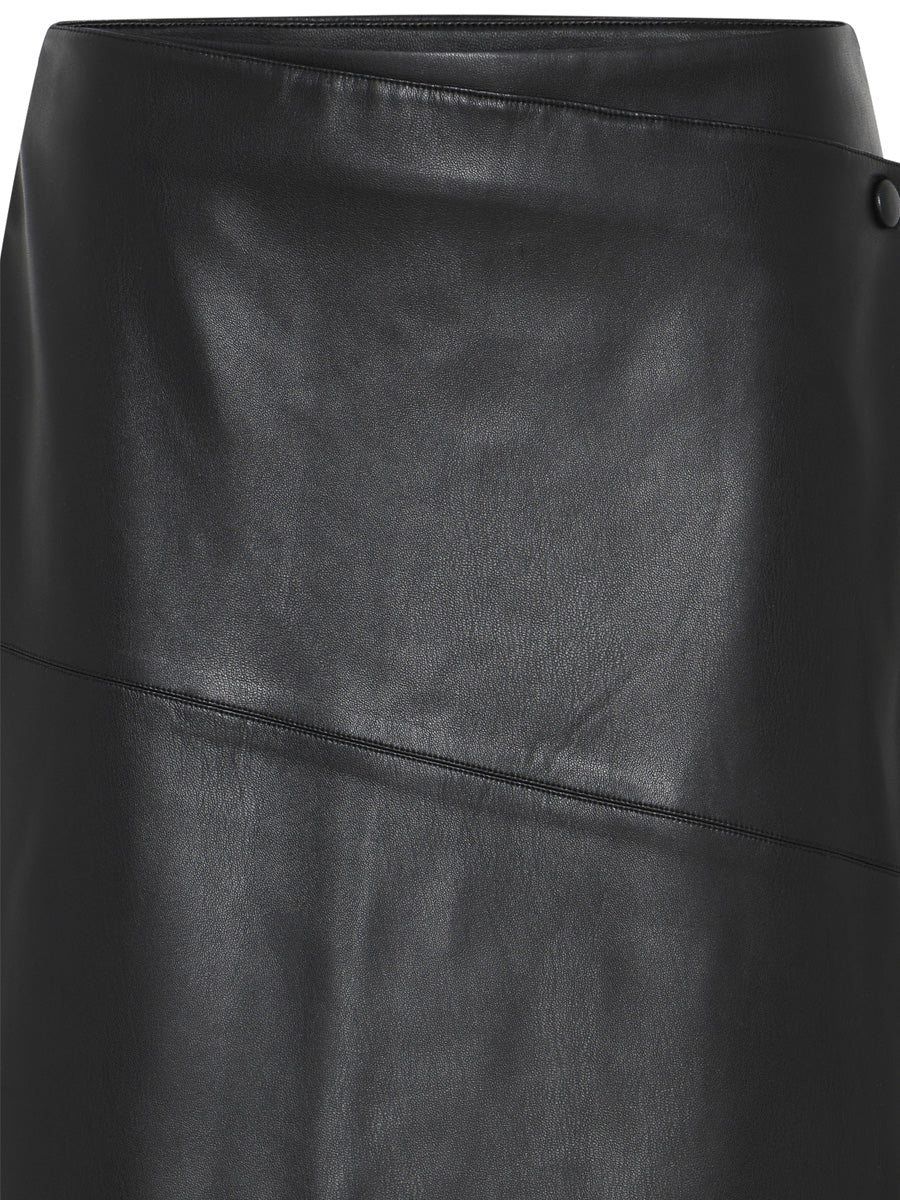 Tässä Bruuns Bazaarin polvipituisessa hameessa pehmeä vegaaninahka ja a-linjainen leikkaus muodostavat tyylikkään ja ajattoman kokonaisuuden. Hame on helppo stailata moneen tilanteeseen – neuleen kanssa se toimii arjessa rennon elegantisti, ja juhlaan sen voi yhdistää hienostuneen puseron ja korkojen kanssa.