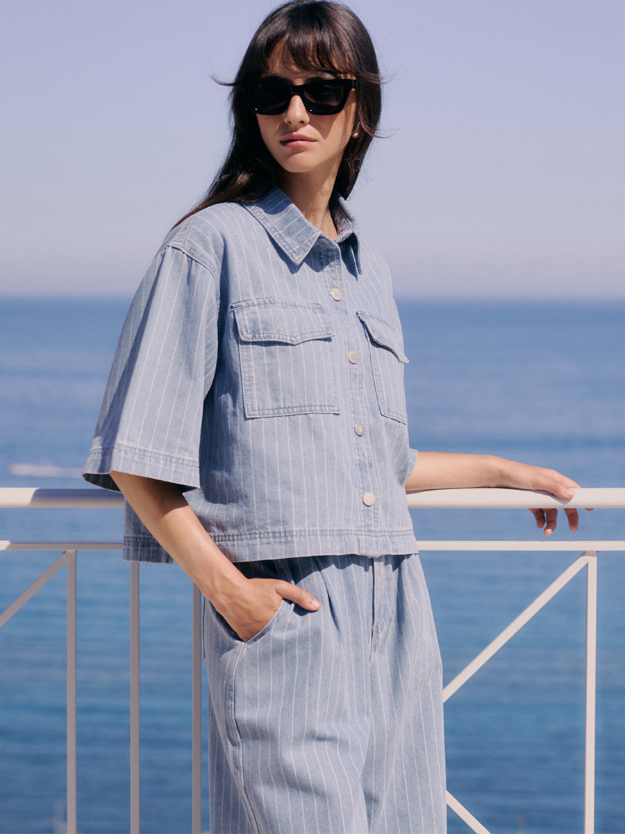 Tässä Grace & Milan farkkupaidassa on väljä mitoitus ja kyynärmittaiset hihat. Etupuolen läppätaskut ja sivuhalkiot tuovat rentoa ilmettä, ja selkää koristava hillitty “grace”-kirjailu viimeistelee kokonaisuuden. Yhdistä yhteensopivien Pompon-farkkujen kanssa tyylikkään kokonaisuuden luomiseksi.